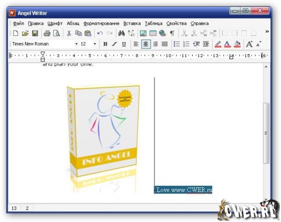 Angel Writer is a free text editor (free Microsoft Word) allowing you to create impressive documents that contain formatted text, graphics and tables. You can learn how to work with Angel Writer in five minutes since it is very similar to Microsoft Word.