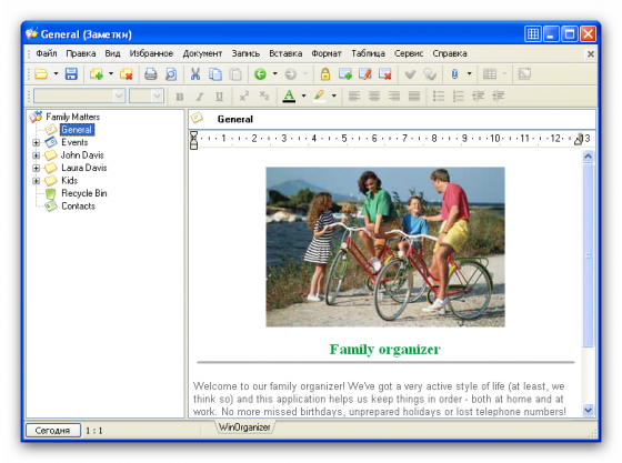 WinOrganizer - полномасштабный персональный информационный менеджер, способный помочь в организации и планировании вашей деловой и личной жизни. Это планировщик, записная и адресная книга, бъединенные вместе. Электронный вариант органайзера вобрал в себя все возможности своего бумажного родственника в более удобном виде, что позволяет работать с ним быстрее и проще. Его интуитивный интерфейс объединил в наглядной и удобной древовидной форме, настраиваемой под конкретные нужды, все ваши заметки, праздники, памятные даты, списки задач, встречи, ссылки, контакты, пароли и пр.