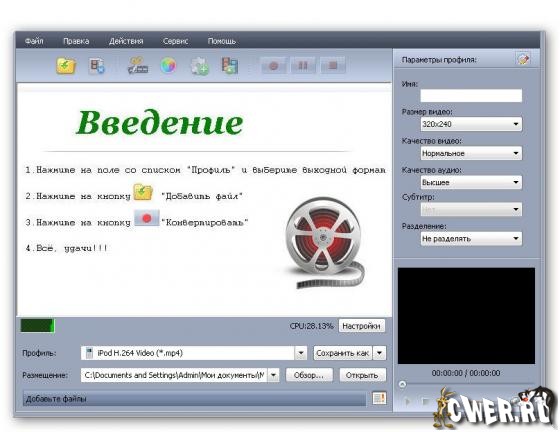 ImTOO MPEG Encoder Ultimate - самый мощный из линейки от ImTOO Software Studio, высококачественный конвертор широкого спектра видео-файлов. Позволяет конвертировать файлы практически любых форматов, таких как AVI, MPEG, DivX, WMV, MP4, MOV, FLV, 3GP, PSP MPEG-4, iPod MPEG-4 и т.д. Помимо этого программа может извлекать аудиодорожку из видео-файлов, конвертировать большинство популярных звуковых форматов, таких как MP3, WMA, WAV, AAC, M4A и т.д. С помощью программы можно быстро и с высоким качеством конвертировать любой файл в мобильные форматы 3GP, FLV, PSP, Zune, iPod, iPhone, Apple TV для дальнейшего использования в портативных устройствах.