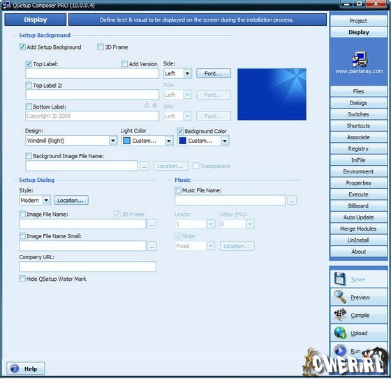 QSetup - это один из самых функциональных и удобных инсталляторов. Огромное количество настроек как внешнего вида, так и непосредственно касающихся установки. Удобная функция - предпросмотр создаваемого дистрибутива. Интерфейс прост и понятен. QSetup мощное и в тоже время предельно простое в использовании средство для подготовки программного обеспечения к установке на платформу Windows.