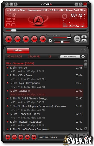 AIMP - это многофункциональный аудио центр. Благодаря встроенным утилитам, вы легко сможете перекодировать музыку из одного формата в другой, записать звук с микрофона или другого звукового устройства, отредактировать тэги музыкальных файлов, а так же группой переименовать или отсортировать их. AIMP2 базируется на известном аудио движке BASS - вы с легкостью можете подключить плагины от этой библиотеки к AIMP.AIMP - это отличный аудио плеер с поддержкой: скинов, многих музыкальных форматов и плюс, имеющий встроенные утилиты для работы со звуком. AIMP победил в «Софт года 2007» в номинациях «Интерфейс» и «Функциональность».