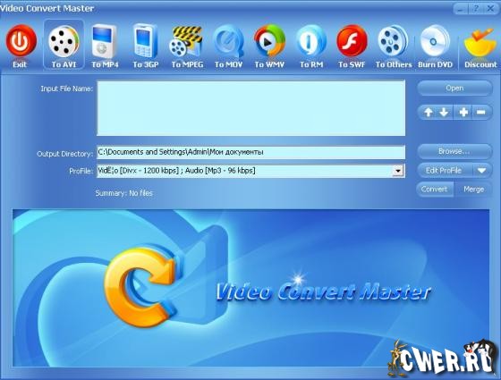 Video Convert Master - универсальный конвертор видеофайлов. Прост в работе - при этом сочетает в себе быстроту и качество обработки. Конвертирует AVI, DVD, VCD, SVCD, MPEG, MPEG 1, MPEG 2, MPEG 4, RM, RMVB, WMV и др. форматы. Записывает видео в DVD/VCD/SVCD. Записывает изображение с DV, WEB Camera, VCR, TV Tuner, и Analog Camera.