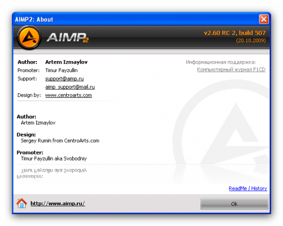 Программа полностью на русском языке. AIMP победил в конкурсе «Софт года» в номинациях «Интерфейс» и «Функциональность».