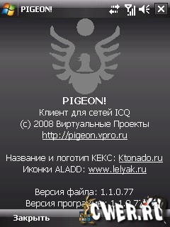 Pigeon - ICQ клиент, это удобная и красивая программа, разработанная для комфортного общения во время работы с КПК. Отличительной особенностью является современный интерфейс, ориентированный на работу без стилуса, только нажатием пальцами.