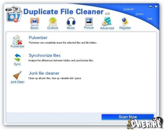 Duplicate Files Cleaner - мощная и профессиональный инструмент для 100% -го, "Бит-В-Бит" поиска и удаления одинаковых файлов с компьютера которые напрасно занимают место, тормозят работу жесткого диска и как следствие, снижают скорость работы самого компьютера. Duplicate File Cleaner - быстро находит и удаляет одинаковые файлы (дубликаты) независимо от их типа, - фотографии, музыку, видео или письма Outlook.