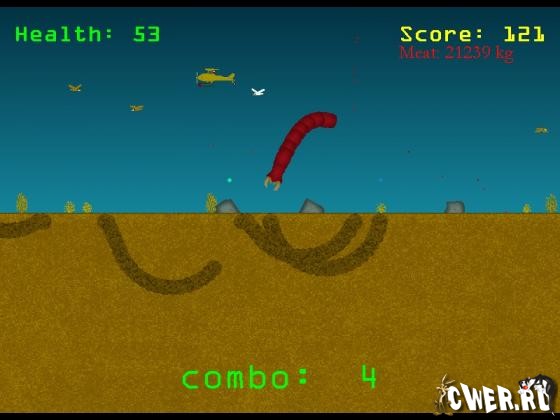 Простая, но очень затягивающая аркада. Вы управляете гигантским песчаным червем (похожим на Шаи-Хуллуда из “Дюны”) и должны обеспечивать его надлежащим пропитанием. В качестве еды, разумеется, выступают животные, люди и прочие сужества, путешествующие по поверхности земли.