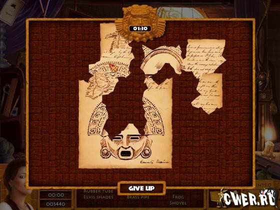 Мини-игра жанра "Я ищу". Ах, джунгли Южной Америки - жаркие, влажные и таинственные, идеальное место для приключений и поисков затерянных артефактов. Дедушка нашей героини уехал в экспедицию и пропал. Разбираясь у него дома, героиня нашла старый дневник и немедленно отправилась на поиски дедушки. В игру можно переигрывать, с каждым разом обновляется список спрятанных предметов и головоломки.