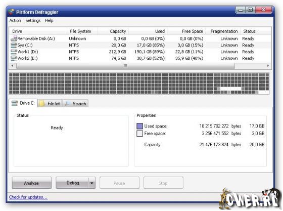 Defraggler - программа для дефрагментации жестких дисков. По словам разработчика, Defraggler отличается от других продуктов на рынке, прежде всего, тем, что позволяет дефрагментировать не только жесткий диск целиком, но и отдельные файлы. Программа предлагает простой и понятный интерфейс, поддерживает Windows 2000, 2003, XP и Vista, в том числе 64-битные версии, работает с файловыми системами FAT32 и NTFS.