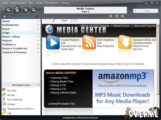 J.River Media Center - мультимедийный центр. Проигрывает большинство популярных аудио и видео форматов, включая MP3, аудио CD и DVD, может преобразовывать CD-аудиотреки в WAV и MP3, переписывать на жесткий диск виниловые диски и кассеты, а также создавать аудио-CD, причем для всех этих функций программа имеет множество настраиваемых параметров. Кроме этого, есть очень хороший и мощный по своим возможностям органайзер мультимедийных файлов, медиаредактор, эквалайзер, встроенный DSP и удобный планировщик заданий для автоматизации процессов проигрывания/записи, а также поддержка пульта ДУ. Из необязательных, но приятных функций - становящаяся уже почти стандартом для "приличных" программ возможность изменения внешнего вида с помощью скинов, мини-режим проигрывателя и "телевизор".
