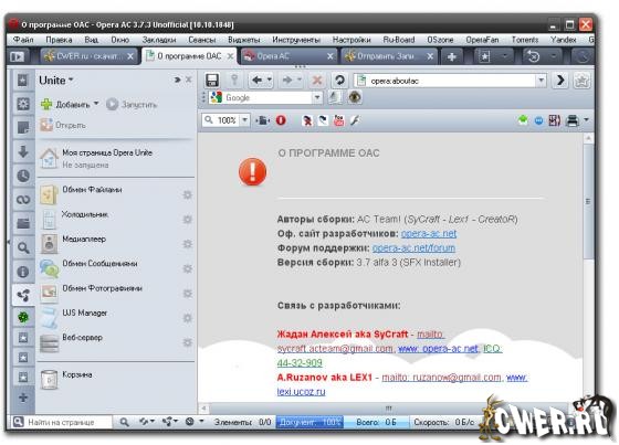 Скачать программу Opera AC 3.7.3 SFX Unofficial 1848 Unite (14,77 МБ):