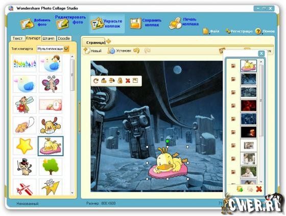 Wondershare Photo Collage Studio - набор инструментов для изготовления фотоколлажей профессионального качества. Кроме этого этот графический инструмент может создавать обложки для CD и DVD, обои для рабочего стола и web - графику. Обновленный пользовательский интерфейс предельно упростит работу с продуктом и позволит пользователям с минимальным уровнем подготовки реализовать свои самые смелые творческие замыслы. Продукт предлагает огромный выбор элементов Clip Arts, красочных спецэффектов и стилей шрифтов. Программа работает под управлением операционной системы Windows.