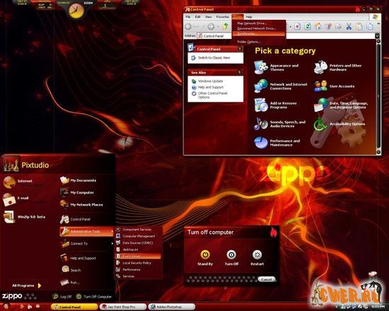 Window Blinds 6 работает на основе скинов – визуальных стилей и тем, которые позволяют изменять вид многих параметров системы Windows ХР. Например, она позволяет сменить вид иконок на панели инструментов, вид кнопки и меню Пуск, границы меню и диалогов, панель задач и заголовки окон.