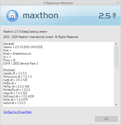 Скачать программу Maxthon 2.5.10 Build 2932 Beta (6,11 МБ):
