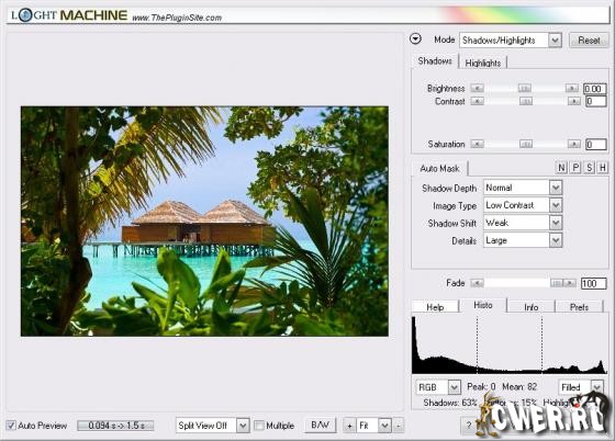 LightMachine - плагин для Adobe Photoshop, предназначенный для регулировки освещения на фотографиях. Плагин позволяет добавлять тени, виртуальный свет, корректировку цвета для повышения качества без выделения отдельных объектов и слоёв. С помощью него вы сможете корректировать яркость, контраст, насыщенность в отдельных областях изображения. Таким образом, вы сможете корректировать фотографии снятые при плохом освещении или с плохого фотоаппарата для достижения максимального улучшения качества изображения. Плагин комбинирует затенение/подсветку, виртуальное освещение и инструменты корректировки на основе цвета для коррекции. Также есть возможность создавать спецэффекты, такие как свечение, закаты и другие эффекты. LightMachine состоит из четырех фильтров, каждый разделен на простой метод для новичков и профессиональный метод с множеством разнообразных возможностей.