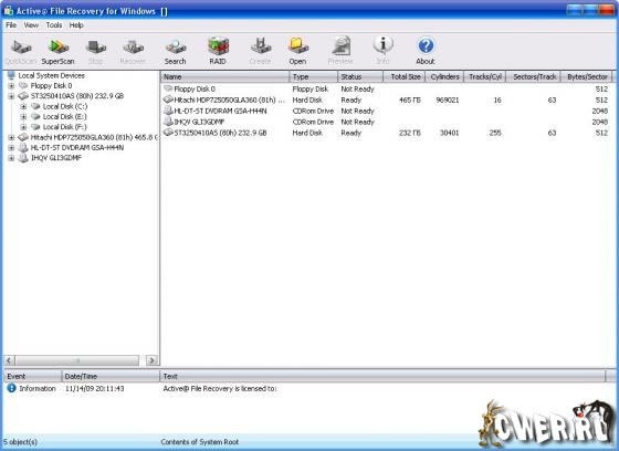 Active@ File Recovery - легкий в использовании, безопасный и эффективный инструмент для восстановления потерянных файлов. Программа обеспечивает восстановление данных в результате случайного удаления, повреждения, вирусной атаки или форматирования. Поддерживает работу с файловыми системами FAT12, FAT16, FAT32, NTFS, NTFS5 и NTFS+EFS. Программа позволяет восстанавливать большое количество файловых расширений, включая графические файлы, документы, архивы, презентации PowerPoint, файлы Corel Draw и многие другие. Кроме того, программа поддерживает большинство типов переносных/портативных устройств, включая CompactFlash, SmartMedia, Secure Digital/MultiMediaCard, карты памяти Sony, Iomega ZIP и т.д. File Recovery позволяет проделывать быстрое и расширенное сканирование дисков. Программа умеет работать напрямую с жестким диском, может создавать образы дисков для переноса данных на другие HDD или резервного копирования. Также имеется поддержка RAID массивов и томов.