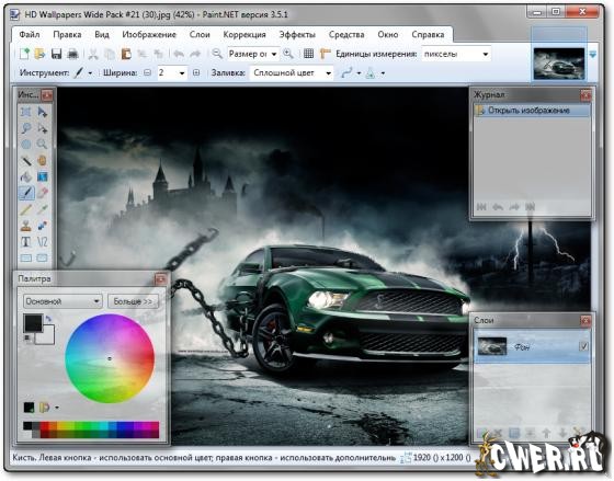 Paint.NET - простой, но мощный и удобный редактор графики. Позиционируется как отличная замена стандартному MS Paint из поставки Windows. Поддерживаемые форматы: BMP, IPEG, PNG, TIF, GIF, TGA и собственный формат PDN. Основные возможности: работы со слоями, применение эффектов, работа со сканером и камерой, коррекция красных глаз, масштабирование от 1% до 3200%.