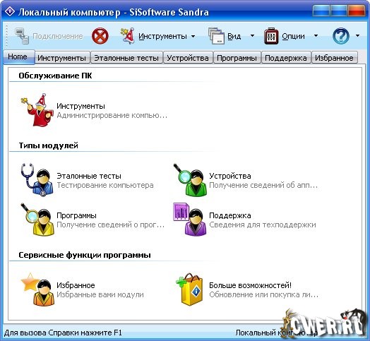 SiSoftware Sandra - это системный анализатор для 32-х и 64-битных версий Windows, включающий в себя тестовые и информационный модули. Sandra старается превзойти другие подобные утилиты и показать реальную картину, объединяя в одной программе возможности для сравнения производительности как на высоком, так и на низком уровне. Вы можете получить сведения о процессоре, чипсете, видеоадаптере, портах, принтерах, звуковой карте, памяти, сети, Windows, AGP, соединениях ODBC, USB2, Firewire, и других. Также вы можете сохранять, распечатывать и отправлять по факсу и электронной почте, загружать на сервер или вставлять в базу данных ADO/ODBC отчеты в текстовом, HTML, XML, SMS/DMI или RPT форматах. Данная версия поддерживает множество источников для сбора информации, в том числе: удаленные компьютеры, КПК, смартфоны, базы данных ADO/ODBC или сохраненные отчеты. Все тесты оптимизированы как для SMP, так и для SMT (Hyper-Threading), поддерживая до 32/64 процессоров в зависимости от платформы.