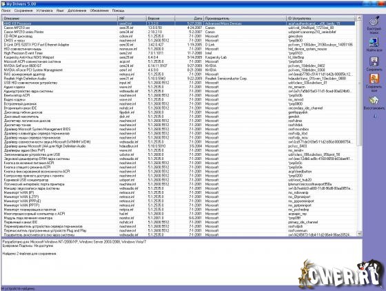 My Drivers Professional Edition - очень полезная утилита для обнаружения, резервирования, восстановления и обновления драйверов в вашей системе. Всего за несколько кликов мыши вы сможете вывести полный список установленных в системе драйверов устройств, извлечь или сделать резервную копию файлов всех или выделенных драйверов в одну папку, а также сделать проверку на наличие новых версий установленных драйверов из базы данных программы. Благодаря этой программе при переустановке системы вам больше не понадобится тратить кучу времени на установку нужных драйверов — просто нажмите одну кнопку и программа восстановит драйверы из резервной копии, после чего вам нужно будет только перезагрузиться и система начнет работать как и прежде. Также имеется возможность создания резервной копии в единый установочный EXE-файл. Интерфейс программы переведен на русский язык.
