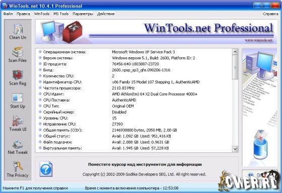 WinTools.net Professional – набор инструментов для оптимизации операционной системы Windows. В состав программы входят компоненты для полного удаления нежелательных программ и «мертвых» ссылок реестра, а также для контроля процессов, настройки системы, интернет-соединений и интерфейса. Кроме того, имеются утилиты для надежного хранения конфиденциальной информации. Работает на платформах Windows 2000, 2003, XP и Vista.