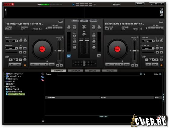 Virtual DJ Pro - профессиональная версия программы для диджеев, позволяющая микшировать музыку в режиме реального времени с использованием эффектов, переходов и многого другого. Программа отлично подходит как для профессиональных диджеев, так и для новичков. Virtual DJ содержит в себе множество аудио-инструментов, эффектов и примочек, созданных специально для ди-джеев, есть также возможность создавать музыкальные треки из MP3-файлов во встроенном плеере, программа позволяет разгонять музыку под нужный темп или увеличивать скорость звучания в ручном и в автоматическом режиме. Поддерживается возможность синхронизации треков по темпу и скорости с помощью нажатия кнопки Sync. Результат готового трека можно записать в WAV или MP3 формат. Но лучше всего эту программу использовать в режиме реального времени на дискотеках и вечеринках.