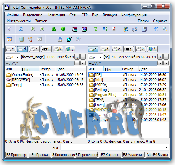 Total Commander - популярный файловый менеджер с практически всеми необходимыми для таких программ функциями. Кроме всех функциональностей, характерных для файловых менеджеров, в Total Commander встроены очень удобные просмотрщики для мультимедиа и графических файлов, распаковщики ZIP, ARJ, LZH, RAR, UC2, TAR, GZ, CAB, ACE и дополнительные dll для других архивных файлов; встроенный ftp-клиент - вообще просто прелесть: можно скачивать/закачивать файлы в несколько потоков, есть докачка, поддержка www-прокси при работе с ftp и есть даже такая функция, как подключение-скачивание-отключение в заданное время к заданному ftp. Не будут лишними и такие функции, как UUE/MIME/XXE кодирование/декодирование и разрезка/склейка длинных файлов, а также множество других функций, крайне необходимых для работы с файлами.