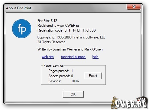 - Отображение количества сэкономленной при помощи FinePrint бумаги