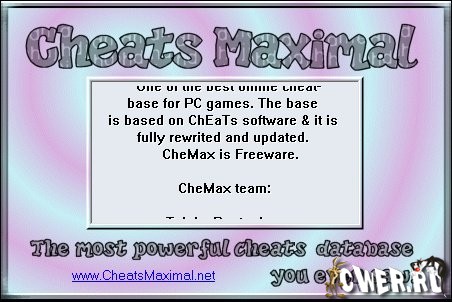 CheMax - наибольшая из известных на данный момент программ, которые являют собой базу данных с кодами для игр. Простой и красивый интерфейс, малый размер, и при этом огромное количество представленных игр. Особенностью базы является отсутствие в ней хинтов и прочей “отсебятины“, вашему вниманию представлены только коды (cheats, hex-cheats) и пароли (passwords).