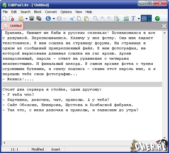 Многофункциональный текстовый редактор с удобным интерфейсом. Помимо DOS и Windows кодировок умеет читать Unix и Mac тексты. В EditPad Lite имеется мощная система поиска и замены текстовой информации. Средствами программы можно производить конвертацию текста в различные кодировки.