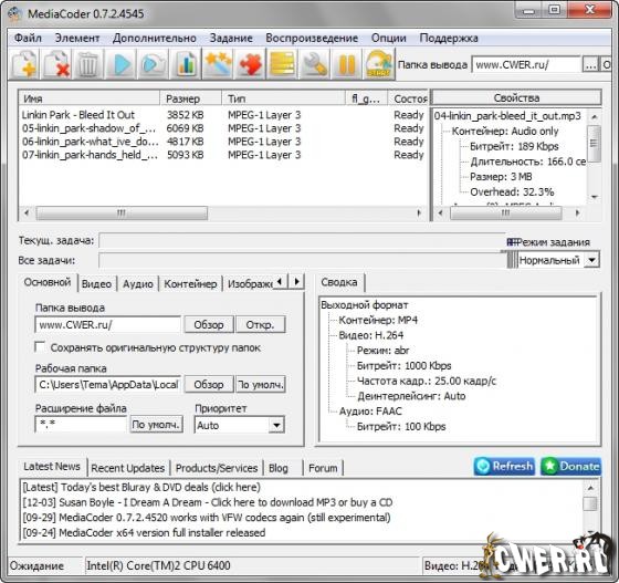 MediaCoder - позволяет повысить компрессию видео и аудио с целью уменьшения размеров файла, может извлекать аудиотреки, предоставляет возможности для конвертирования видео в нормальные VCD/DVD, может осуществлять конвертирование аудио без заметной потери качества, способен создавать копии CD "на лету" и многое другое.