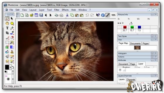 PhotoLine - простая в обращении программа, представляющая собой редактор растровой и векторной графики. Данный редактор позволяет редактировать как готовые фотоизображения, так и рисовать различные картинки при помощи специальных эффектов, инструментов и фильтров. В программе присутствует полная поддержка цветовой модели CMYK, работа с файлами форматов PLD, PDF, TIF, BMP, GIF, JPEG, CMX, PCD, PCX, PNG, PSD, EPS, PICT, TGA, IMG, ICO, ANI, XBM, IFF, ESM, CGM, PIC, CVG, GEM, WMF и EMF. Программа позволяет работать со слоями изображений, добавлять к изображениям текст, создавать HTML-галереи с графикой, редактировать и создавать анимационные Flash и GIF файлы, убирать с цифровых фотографий эффект красных глаз и многое другое. Обладает простым в использовании интерфейсе, благодаря чему программу сможет использовать большинство пользователей.