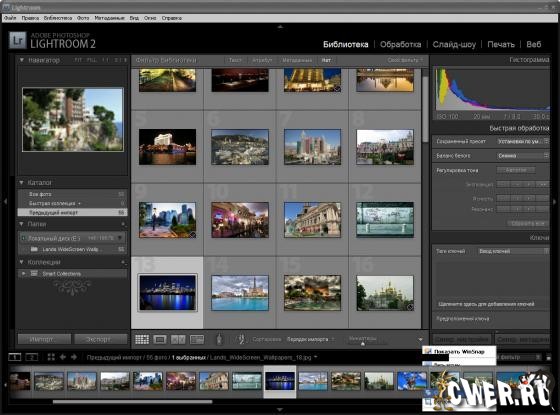 Adobe Photoshop Lightroom - программа, являющаяся неотъемлемым приложением в современном рабочем процессе цифровой фотографии. Теперь появилась возможность быстрого выполнения действий по импорту, обработке и демонстрации изображений, а также по управлению ими — как для одного снимка, так и для целой серии снимков. Улучшенные инструменты исправления, мощные функции систематизации и возможность гибкой настройки параметров печати ускоряют процесс работы. Использование Photoshop Lightroom позволяет уменьшить время, проведенное за компьютером, и потратить освободившееся время на работу с объективом.