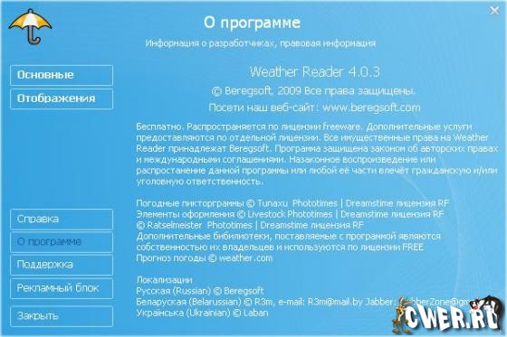 Скачать программу Weather Reader 4.0.3 (3,08 МБ):
