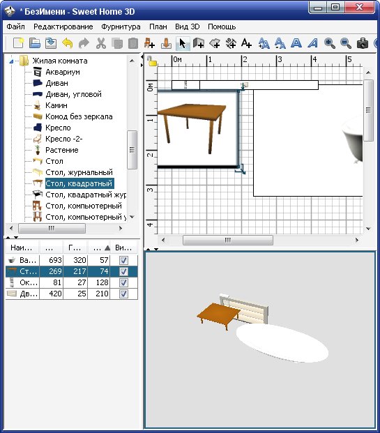 Во время работы можно использовать 3D-модели, которые в большом количестве представлены на официальном сайте и доступны для бесплатной загрузки. Программа дает возможность предварительного просмотра интерьера в 2D (вид сверху), а также может визуализировать конечный вариант расстановки мебели в 3D.