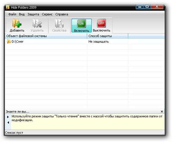 Скачать программу Hide Folders 2009 v3.3 Build 3.3.17.599 (2,42 МБ):