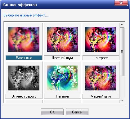 • Каталог эффектов, позволяющий быстро посмотреть результат применения фильтров.