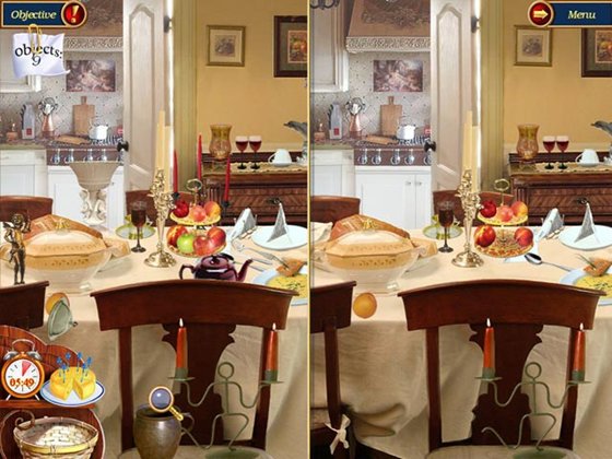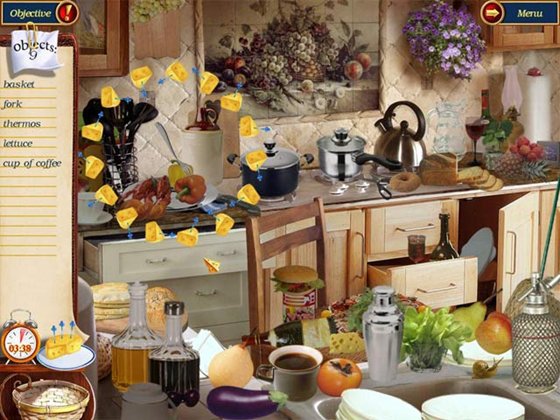 Вам предстоит играть в игру, где кошка и мышь сотрудничают, чтобы подготовить самую прекрасную кухню вокруг! В этом беззаботном приключение, Вам надо: искать хитро-спрятанные предметы и находить различия между картинками, чтоб определить местонахождение недостающих глав удивительной поваренной книги.