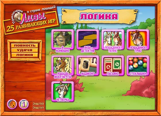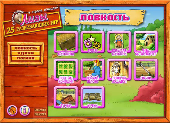 Наступили каникулы, а это значит, что впереди захватывающие приключения и много-много самых интересных событий! Вместе с девочкой Лизой ты отправишься в настоящую Страну Лошадей, где ни секунды не проходит без весёлых игр. Ты проверишь быстроту своей реакции, потренируешь память, внимание и логическое мышление.
