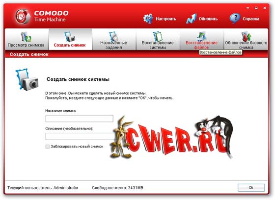 Comodo Time Machine - это бесплатная программа для отката системы, абсолютный аналог таких замечательных программ, как Roll Back RX и Eaz Fix. Программа поможет защитить ваш компьютер от сбоя, неправильно установленного драйвера, поражения любым вирусом, и вернуть обратно исправную систему за считанные минуты, не влияет на производительность и при этом позволяет без перезагрузки сделать автоматически или вручную менее чем за 3 секунды полный снимок системы, в любой из которых вы можете быстро вернуться или вернуть из них утерянные или разрушенные данные.