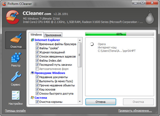 CCleaner, в зависимости от настроек, чистит следующие компоненты Windows: