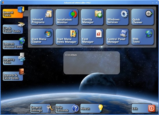 Advanced Uninstaller PRO - утилита для корректного и полного удаления программ с множеством дополнительных возможностей. Имеется Startup Manager, модуль управления программами, автоматически запускаемыми при загрузке системы, а также отображающий детальную информацию по каждой записи. Присутствует чистильщик реестра, оптимизатор системных ресурсов, дефрагментатор, модуль создания резервных копий и т.д. Также данная программа позволяет чистить кукисы, историю переходов и записи более, чем ста программ. Монитор инсталляций отслеживает изменения в системе и позволяет полностью «откатить» изменения, сделанные установленной программой. Имеется средство для оптимизации работы компьютера, путём грамотного управления запущенными сервисами.