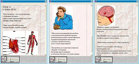 - На диске содержится 31 урок (Lesson) на различные темы, по 10 упражнений (Drill) к каждому уроку и англо-русский словарь (64 000 слов.