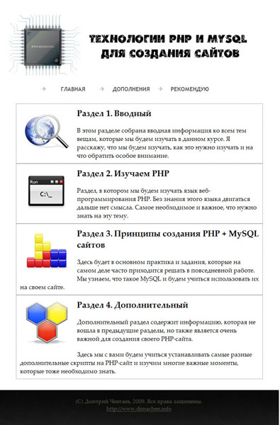 Технологии PHP и MySQL для создания сайтов