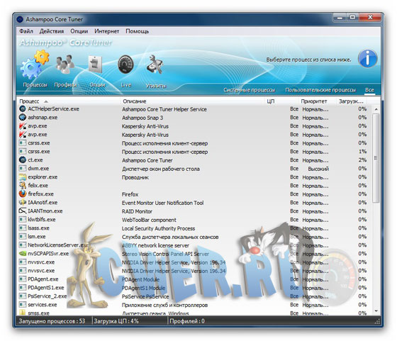 Для мгновенного результата вы можете нажать на кнопку авто-оптимизации, после чего для всех ваших запущенных программ будет сделана оптимизация, по использованию центрального процессора. Однако, вы также сможете самостоятельно настроить использование процессора для каждой программы по-отдельности. Кроме этого, вы сможете отладить отдельные процессы, просматривать в реальном времени производительность каждого из ядер вашего процессора или повысить общую производительность системы, с помощью дополнительных инструментов, встроенных в программу.