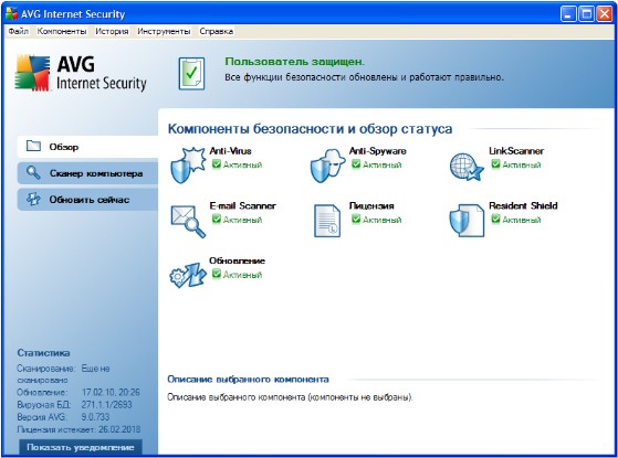 AVG Internet Security - комплекс программ для защиты ПК от опасных объектов и сетевых угроз. Программа блокирует вирусы, трояны, червей, шпионске программы, а фаервол защитит от возможных сетевых атак.
