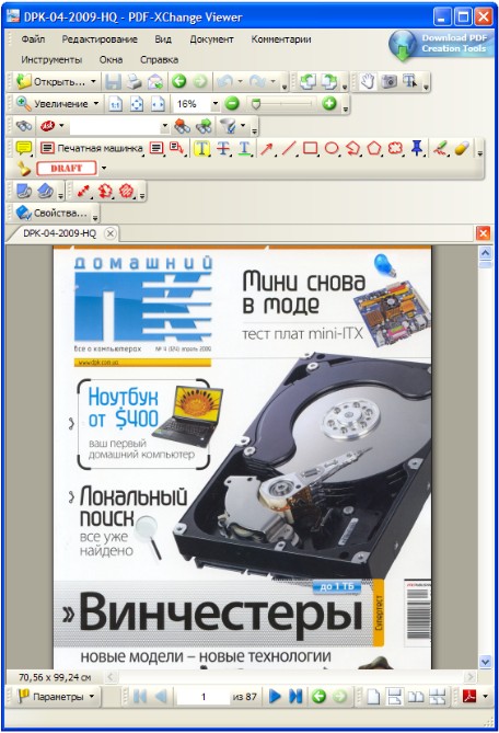 PDF-XChange Viewer - программа для просмотра файлов в формате PDF, более быстрая и более функциональная в отличие от известного просмотрщика Adobe Reader. Кроме стандартных возможностей программа позволяет одновременно просматривать сразу несколько файлов, добавлять комментарии и аннотации к документам, "на лету" редактировать любые страницы PDF, экспортировать содержимое в файлы BMP, JPEG, TIFF, PNG и другие, а также осуществлять другие действия.