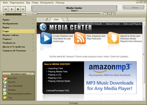 Программа дает возможность организовать коллекцию фотографий, просматривать детальную информацию о каждом файле. Уникальный полноэкранный режим позволяет работать с медиа-коллекцией, управляя ей с экрана монитора или телевизора. Поддерживаются различные пульты дистанционного управления. Media Center поддерживает множество моделей портативных плееров, позволяет синхронизировать медиа-библиотеку с iPod и многими другими устройствами.
