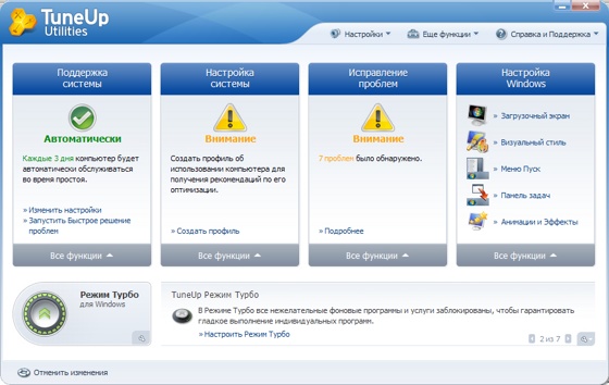 TuneUp Utilities 2010 welcomes you with a completely redesigned Start page, which tells you about the status of your computer. If problems or nonoptimal settings are found, you are only a mouse-click away from resolving them. The Start page also tells you when new tips for increasing computer performance are available and warns you if maintenance tasks are not being taken care of automatically. The Start page also shows you whether new automatic startup programs have been added to Windows since the last time you ran TuneUp Utilities. You can decide whether these programs that start up automatically are really necessary.