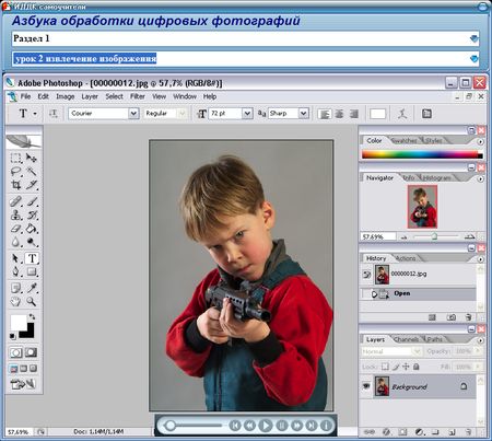 Курс предназначен как для обладателей цифровых фотоаппаратов, так и для тех, кто занимается оцифровкой и ретушью обычных пленок и фотографий. В нем представлены уроки, которые помогут при реставрировании старых фотографий, изготовлении дружеских шаржей, подготовке фотографий для печати. Интерактивные уроки, озвученные дикторами, возможность непосредственно участвовать в обучающем процессе помогут быстро и в полном объеме овладеть возможностями программы.