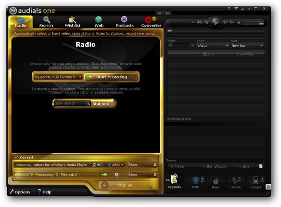 AudialsOne Platinum - это мощный комбайн для работы с видеосервисами и интернет-радио. Позволяет записывать фильмы которые вы смотрели по сети Интернет. Программа предоставляет вам возможность смотреть лучшие фильмы и Вам больше не придется беспокоиться о исчезновении их из интернет-магазинов видео. AudialsOne также может записывать клипы, захватывать простое и потоковое видео HD фильмов с видео-порталов и видео по запросу с веб-сайтов. Миллионы видео и аудио файлов теперь находятся в пределах вашей досягаемости.