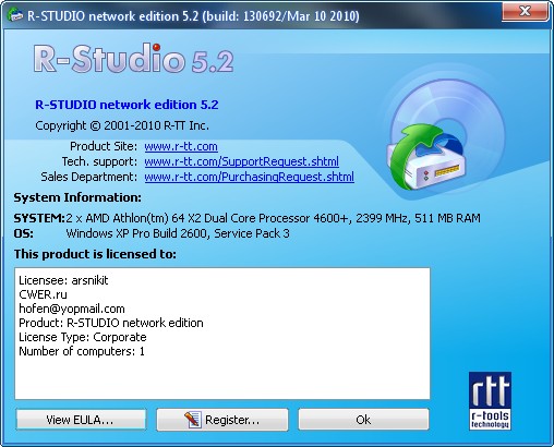Скачать программу R-Studio 5.2 Build 130692 x32 (9,15 МБ):
